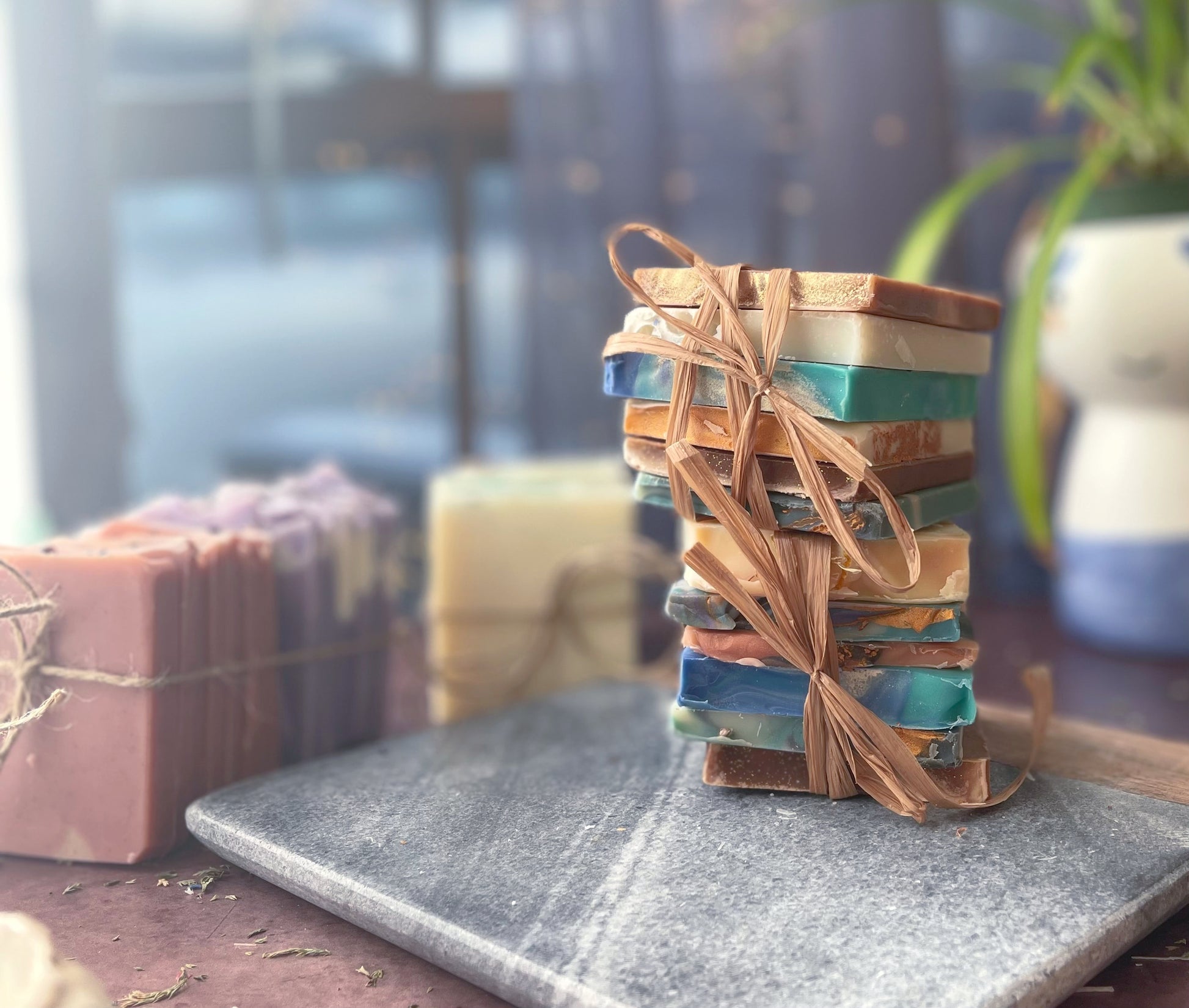 ♢ Our soaps sizes are around 4oz - variations in specific size can vary from 3.8oz to about 4.3oz.